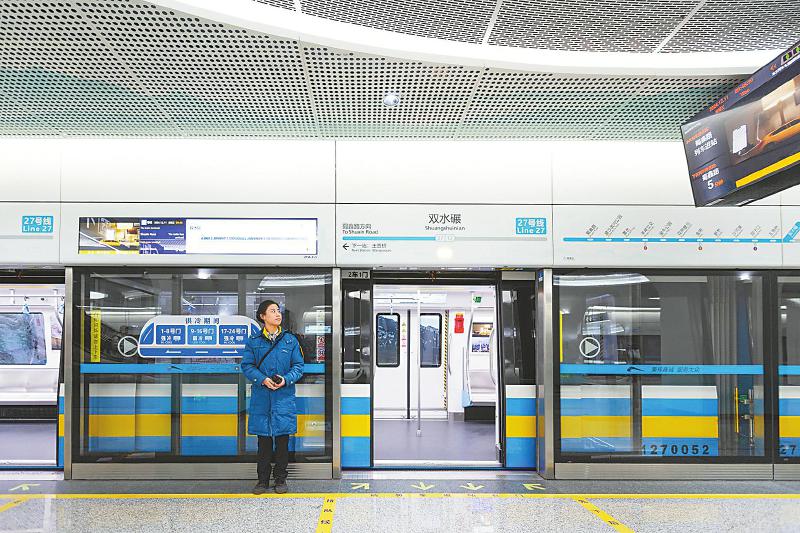 12月11日上午,由成都市民代表、建设者代表等组成的百余名“体验官”,参与成都地铁27号线一期全自动运行试乘。成都地铁27号线一期是成都市第二条全自动运行的轨道交通线路,全长24.86公里,共设车站23座。建成后将补强城市北部、西部区域的轨道交通网络,进一步改善沿线居民出行,助力园区发展。右图为成都地铁27号线双水碾站。 林漫 摄(C视觉)