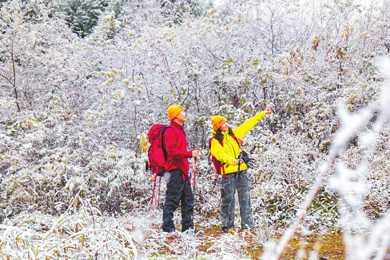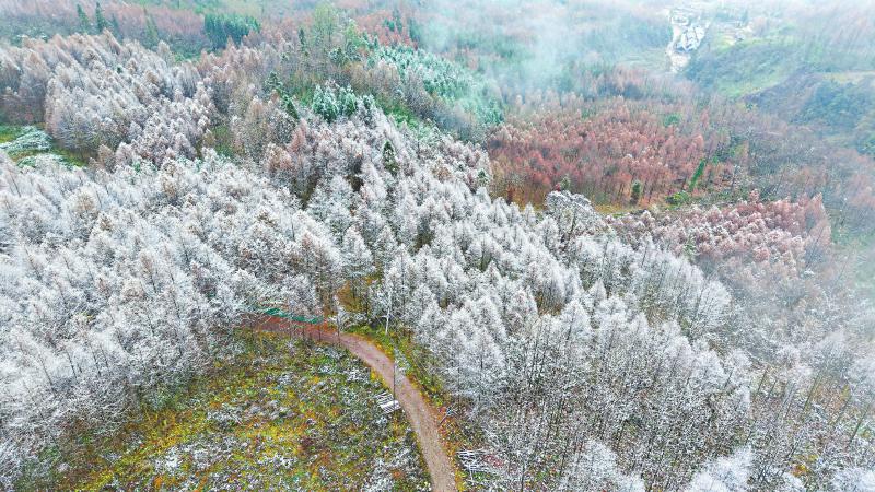 12月9日,成都崇州市文井江镇琉璃坝海拔1500米以上地区堆起积雪,银装素裹的“童话世界”令人沉醉。 谢红霞 摄(C视觉)