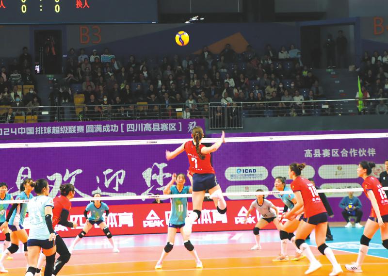 “四川队加油,四川队雄起!”夜幕降临,在宜宾市高县翰笙文化体育艺术中心,呐喊助威声响彻夜空,2024—2025中国排球超级联赛(四川·高县赛区)在此激战正酣。时隔一年,这项全国排球重量级赛事再次落地高县,来自全国各地的球迷与游客汇聚于此,共享这场体育盛宴。潮涌的体育热情,宛若冬天里的一把火,沸腾了这座城,也为高县注入新的活力。