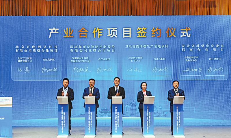 当天的签约仪式上,北京百度网讯科技有限公司投资的百度智能云千帆大模型智算产业(内江)创新基地项目引人瞩目。“这一项目落地,将助推区域内重点产业引入人工智能和大模型,进一步推动人工智能在区域内的普及和应用;同时推动全市传统行业加速数智化改造,赋能行业创新与智能化升级。”内江高新区相关负责人介绍,根据双方的合作内容,项目将建设大模型产业软硬一体化算力底座,同时打造大模型产业创新基地。未来投用后,在提供高效实用、安全可靠人工智能新型基础设施的同时,预计还可引入近60家人工智能和大模型相关生态链企业,为内江高新区带来完整的人工智能和大模型产业链生态。
