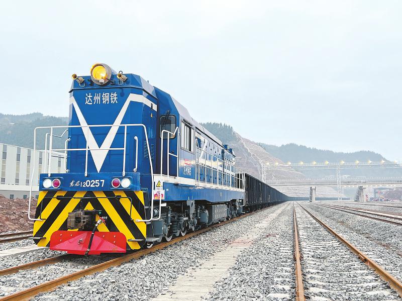 12月22日,一列满载货物的列车驶出麻柳镇站,开往方大达钢工厂站,标志着四川达州东部经开区铁路专用线开通运营。该专用线接轨于达万铁路麻柳镇站,连接达州东部经开区重点企业方大达钢的新厂区,是方大达钢搬迁升级项目的关键货运“动脉”。建成投运后,近期货物到发运量为840万吨/年,远期预计可达到1400万吨/年。 方大达钢供图