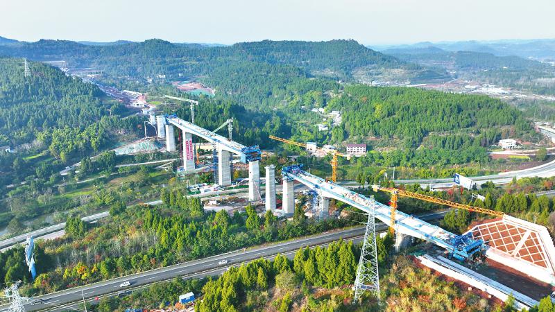 12月14日,南充市顺庆区华凤街道,成达万高铁江家山西河特大桥跨兰海高速和西河两个连续梁最后节段顺利完成施工。江家山西河特大桥全长1276.88米,为成达万高铁重点控制性工程之一,由中铁十二局集团有限公司承建。 黎涛 摄