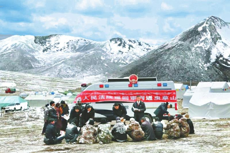 “正义雪莲”是甘孜法院推出的法治文化品牌,取“以正义之名,雪莲之姿,守护公正”之意,共有19支“正义雪莲”团队,奔波在36条巡回审判线路上。石渠县人民法院法官泽仁曲西说:“石渠极寒,冰天雪地,群众诉讼相当不便,我们巡回办案,送法下乡,解决群众的法律需求。”