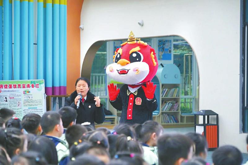 “校园里来了一只独角兽!”近日,泸州法院“泸法麒麟”志愿服务队叙永分队的志愿者们走进鱼凫公园幼儿园,身着“泸法麒麟”服饰的干警受到孩子们的热烈追捧。那一刻,孩子们幼小的心灵记住了这只守护公平与正义的“麒麟”。