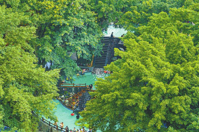 温泉经济也是峨眉山景区的必玩项目之一。许多游客在玩雪之余,选择前往灵秀温泉、红珠山森林温泉、瑜伽禅意温泉消除疲惫、疗养身心,或前往峨眉山源头温泉,打卡温泉泉眼。通过打造峨眉山温泉基地,峨眉山景区推动“峨眉山冰雪节”升级为“峨眉山冰雪温泉季”,实现冰雪与温泉有机结合,极大丰富了旅游业态。