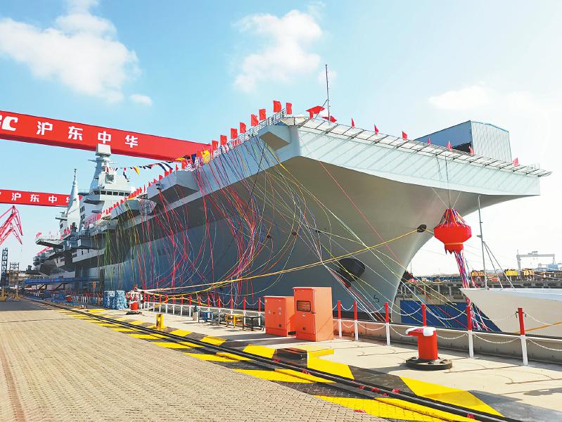 ●舷号为“51”,满载排水量4万余吨 ●设置双舰岛式上层建筑和全纵通飞行甲板 ●创新应用电磁弹射和阻拦技术 ●可搭载固定翼飞机、直升机、两栖装备等 03版