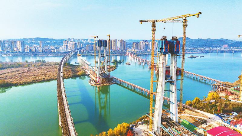 ·成达万高铁遂宁涪江特大桥主塔封顶