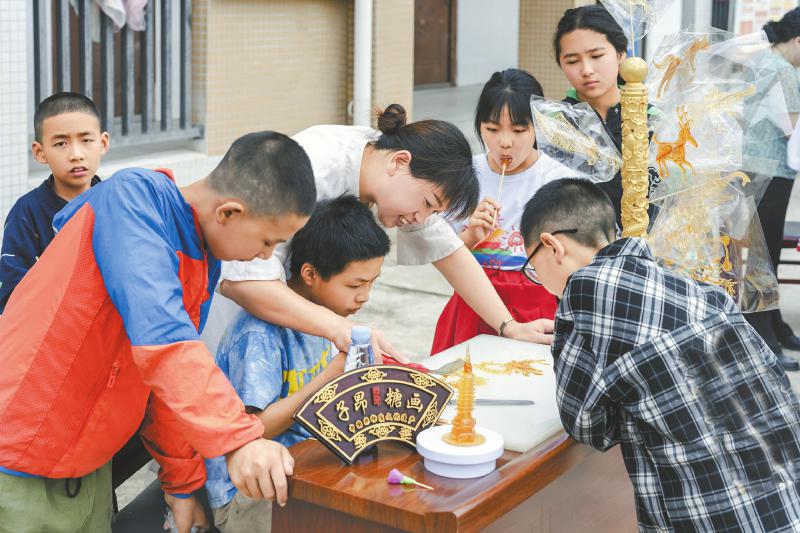 塑泥人、画糖画、制漆扇、结彩绳……近日,在遂宁射洪市沱牌镇第三小学校园里,一场别开生面的民间技艺体验活动火热开展。在射洪市民间文艺家协会组织下,太和泥人传承人陈中前、子昂糖画传承人王述云、府河漆扇传承人杨于霈等民间文艺志愿者带来精彩表演和展示,给校园增添了浓厚的文艺氛围。