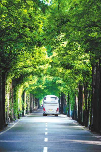 4月22日 成都崇州市中崇路道路两旁繁茂的树木,把这条路搭成了一条“绿色长廊”,车行其间仿佛行驶在“绿野仙踪”的童话世界。