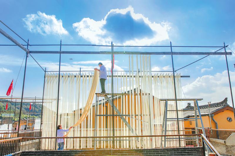 11月5日 德阳市中江县的村民们利用晴好天气制作中江挂面。从早晨开始,和面、晾面、收面,一气呵成。