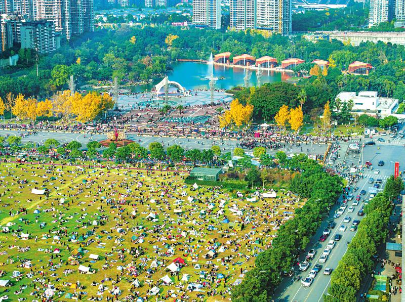12月1日 冬日暖阳下,成都市的公园、草坪上都长满了“向日葵”。图为市民们在成都市温江区光华公园旁的大草坪上享受阳光。