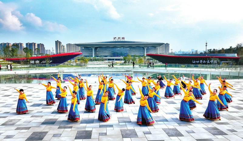泸州高铁站前广场投用,市民在广场上载歌载舞。 刘学懿 摄