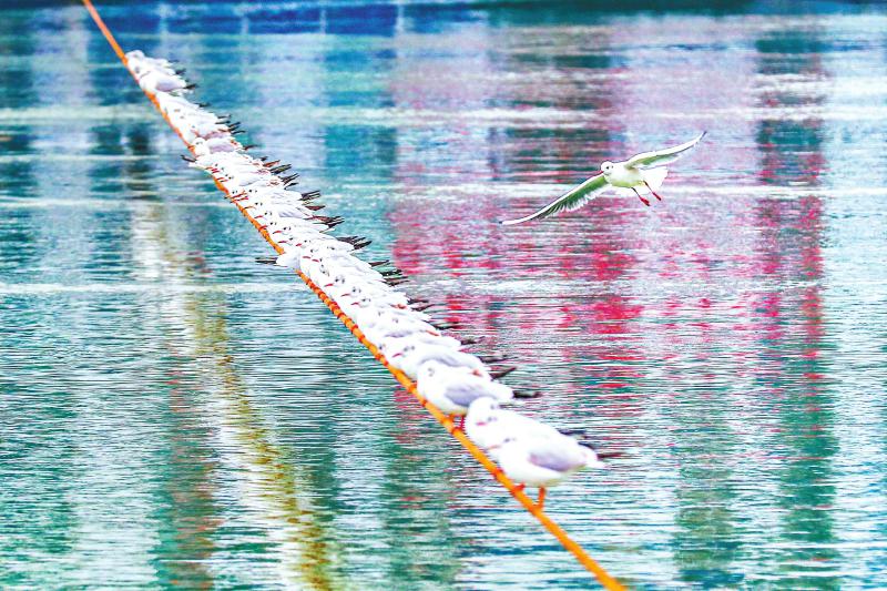 泸州东门口,红嘴鸥每年飞来过冬。