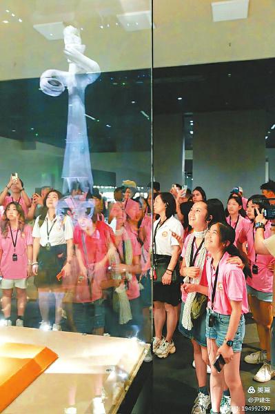 第一期海外华裔青少年“寻根中华·行走天府”研学活动在四川举行。图为华裔青少年在三星堆博物馆参观。