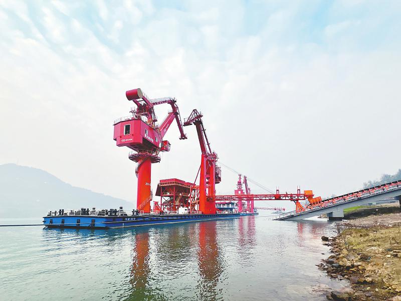 2024年12月27日傍晚,站在主体工程已完工的重庆市万州区新田港二期码头上,采访团记者看见满载的货船在长江中穿行……