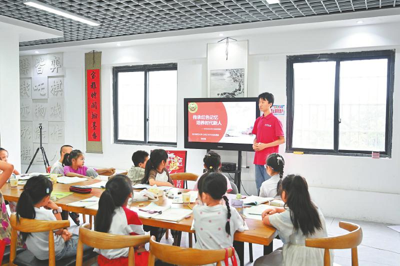 四川师范大学“狮语红色档案”“万档思政”志愿服务宣讲队针对不同年龄的受众,设计了形式多样的宣讲主题。 省档案馆供图