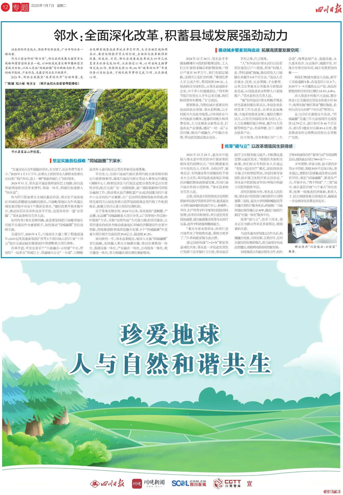 统筹“破与立”,改革下深水,邻水正在为群众带来更多看得见、摸得着的实惠。