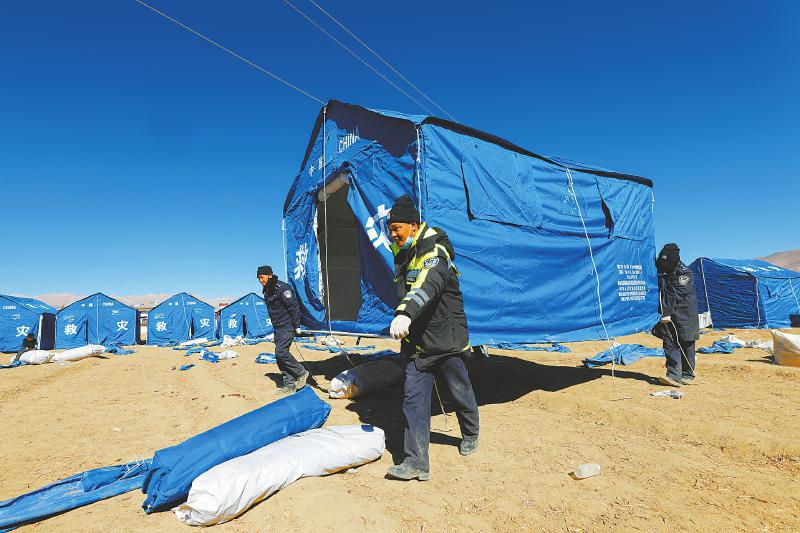 8日,西藏自治区定日县的人们从接连不断的余震和零下16摄氏度的寒夜中醒来,进入抗震救灾第二天。