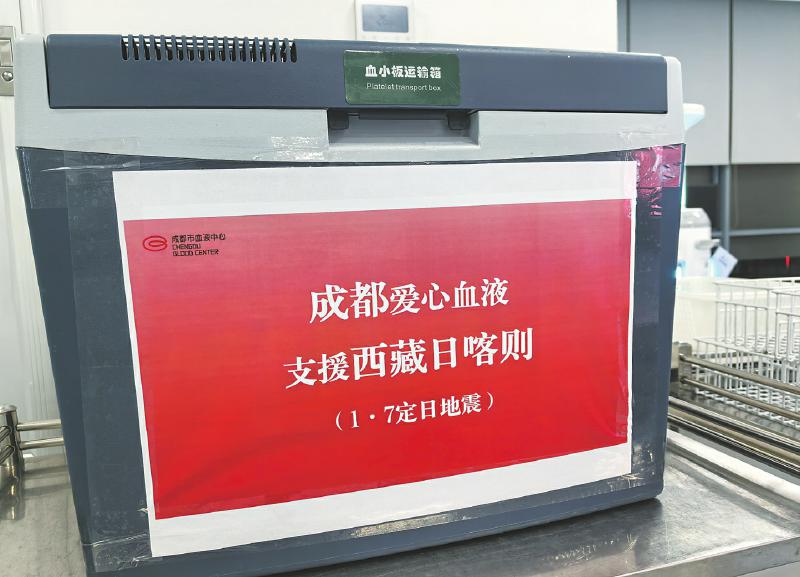 1月8日22时30分,成都市卫生健康委接国家卫生健康委紧急通知,紧急启动血液应急调派机制。1月9日4时许,成都市血液中心援助的B型血小板20个单位完成装箱,由市血液中心副主任康建勋携带,乘坐最早一趟飞往日喀则的航班,9时抵达日喀则市中心血站进行交接。