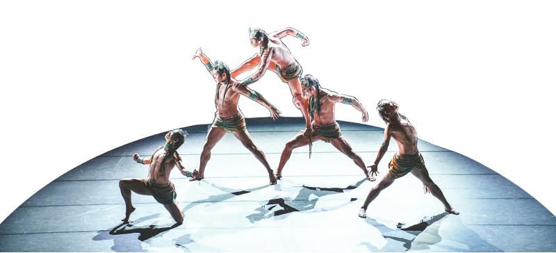 演员作为表现的主体,舞姿作为叙事的语言,一幕幕历史群像剧相继拉开。以“润川化蜀”篇章中的滔天洪水为例,数十名舞者身手相连,不依赖其他道具和情节,以纯肢体语言的形式表现漫天大水的张力。“这一幕对演员的要求是身体能有多延展就要多延展,能跳多高就跳多高,还有对身体细节、呼吸节奏等的把控,要求非常之高,是对演员的极大考验。”该剧执行导演何滔解释。