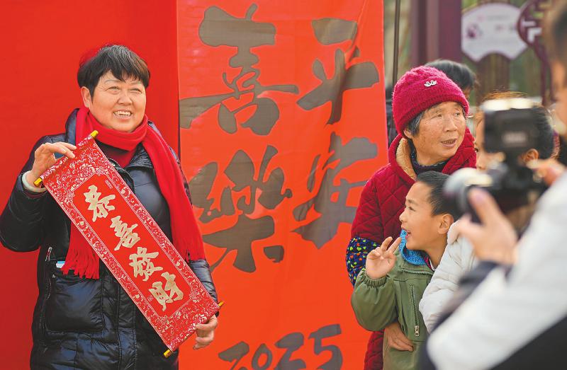 1月13日,四川天府新区眉山片区开展“福满新春集市,共迎瑞气新年”爱心集市活动。图为志愿者在锦江镇毛家渡社区为群众拍摄新年趣味照片。 翁光建 摄(C视觉)