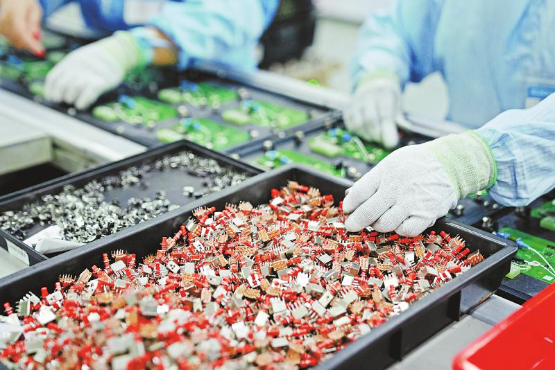 在另一条流水线上,一个个黑色的方盒子有序前进,组装、调试、包装……待最后一道工序结束,家庭常用的电视机顶盒新鲜出炉。