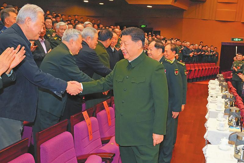 下午4时许,习近平来到老同志中间,全场响起热烈掌声。习近平同大家亲切握手、互致问候,关切询问他们的身体和生活情况,共同回顾过去一年党、国家和军队事业走过的不平凡历程、取得的重大成就。老同志们一致表示,要更加紧密地团结在以习近平同志为核心的党中央周围,坚持以习近平新时代中国特色社会主义思想为指导,深入贯彻习近平强军思想,深刻领悟“两个确立”的决定性意义,坚决做到“两个维护”,贯彻军委主席负责制,弘扬光荣传统、永葆政治本色,坚定信心、团结奋斗,继续为打好实现建军一百年奋斗目标攻坚战,为以中国式现代化全面推进强国建设、民族复兴伟业作出积极贡献。
