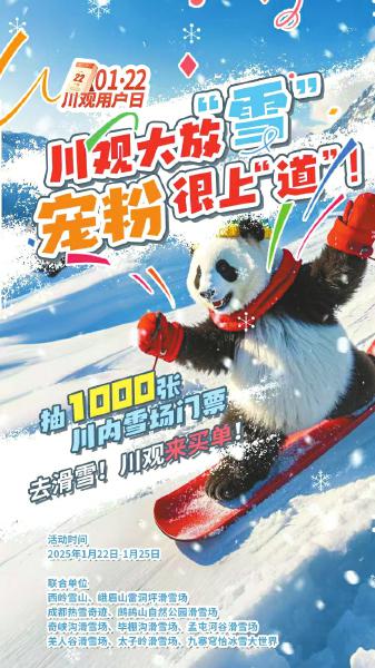 为了感谢广大读者长期以来的陪伴与支持,1月22日,四川日报全媒文体新闻中心体育工作室联合四川省冰雪运动协会,在2025年第一个川观用户日送出“王炸”福利:鹧鸪山自然公园滑雪场、奇峡沟滑雪场、毕棚沟滑雪场、孟屯河谷滑雪场、羌人谷滑雪场、太子岭滑雪场、峨眉山雷洞坪滑雪场、西岭雪山、成都热雪奇迹、九寨穹恰冰雪大世界等10家省内滑雪场总计1000张滑雪门票免费送,邀你来一场说走就走的滑雪之旅。