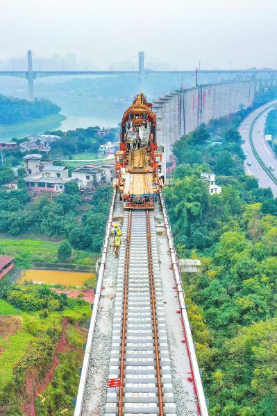 1月13日,在泸州市江阳区,隆黄铁路隆叙段扩能改造工程沱江特大桥施工现场,正在进行箱梁架设。高耸的桥墩,与G76厦蓉高速公路和渝昆高铁川渝段“同框”。 该项目为国家西部陆海新通道骨干通道项目之一,将无缝对接已经投入运营的隆黄铁路叙毕(叙永至毕节)段,从而构建起一条连接“四川—贵州—广西”的便捷出海铁路货运大通道,对成渝地区双城经济圈建设具有重要意义。牟科 摄(C视觉)