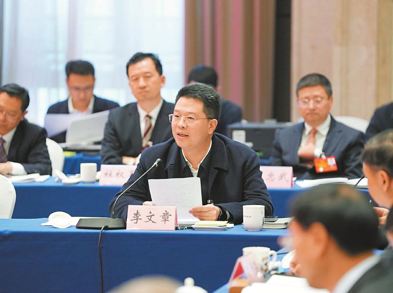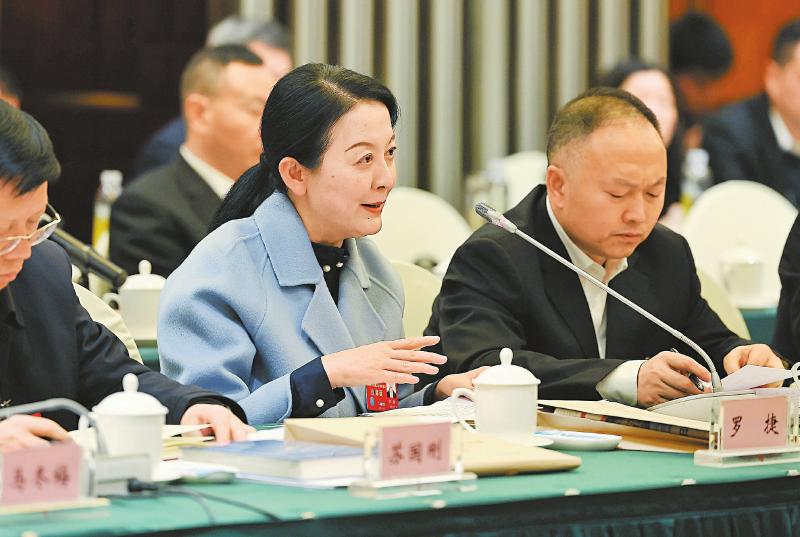 罗捷代表(中)建议,探索用好高铁快运功能,大力发展高铁货运。