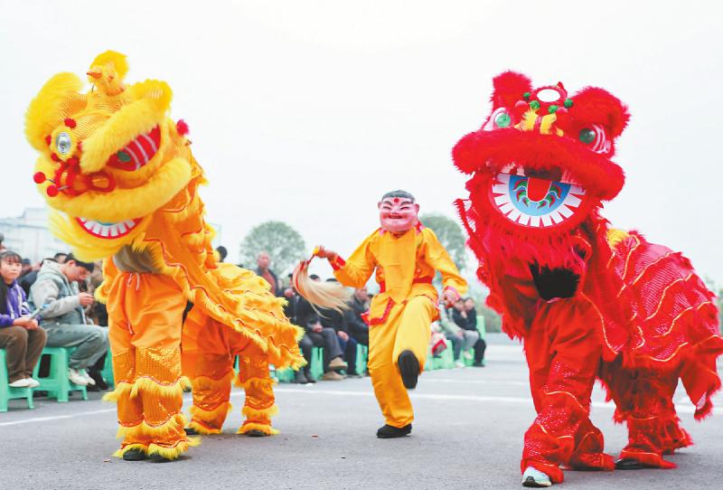 民间艺人舞狮贺新春。 邱海鹰 摄(C视觉)