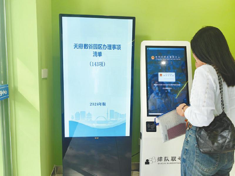 2023年改造近1000平方米的政务服务大厅空间,打造企业综合服务中心,集成多项功能,开辟个性化服务空间,开设6个增值化服务窗口,提供“一站式”服务。选派首席服务专员驻点“天府数谷”,建成园区嵌入式服务驿站,实现企业办事“足不出园”。