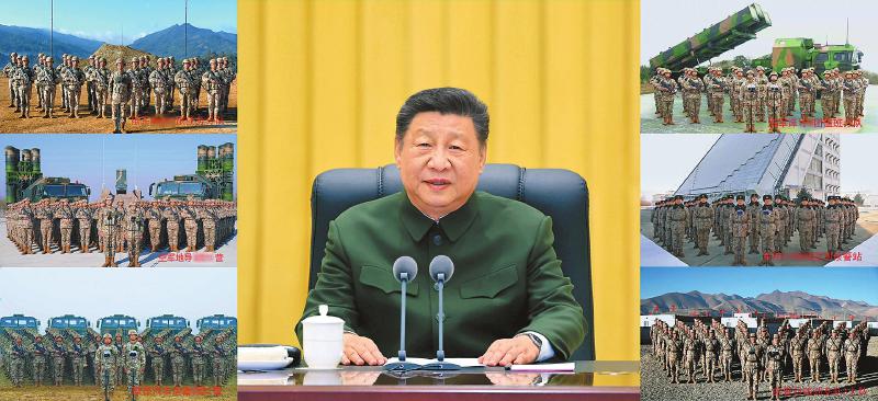 1月24日,中共中央总书记、国家主席、中央军委主席习近平到北部战区机关视察慰问,通过视频看望基层官兵,检查部队战备值班和执行任务情况,代表党中央和中央军委,向全体人民解放军指战员、武警部队官兵、军队文职人员、预备役人员和民兵致以诚挚问候和新春祝福。这是习近平同南部战区陆军某旅任务分队、东部战区海军岸舰导弹某团值班分队、中部战区空军地空导弹某营、军事航天部队某监测预警站、郑州联勤保障中心汽车运输某团2营、武警西藏总队日喀则支队执勤3大队官兵进行视频通话(拼版照片)。 新华社记者 李刚 摄