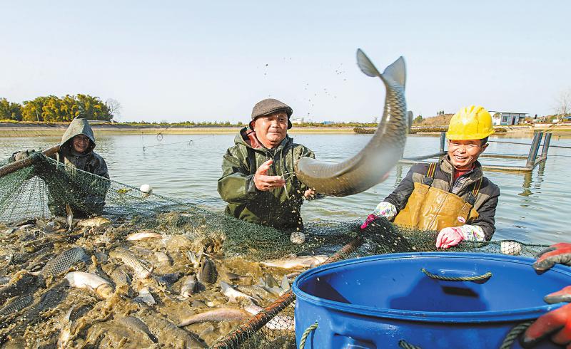 临近春节,鲜鱼走俏。1月26日(农历腊月二十七),在遂宁市安居区安居镇吴林军渔场,养殖户抓紧捕捞鲜鱼供应当地水产批发市场。 吴奉家 摄(C视觉)
