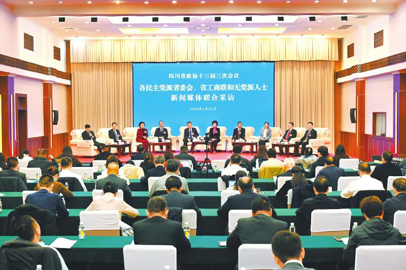 1月21日晚,成都金牛宾馆中苑会议室内,各民主党派省委会、省工商联有关负责人和无党派人士代表,结合本次省两会重点提案、年度履职情况以及特色亮点工作等回答记者提问。