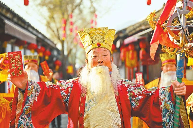 有巡游表演,亦有活态展示。古城内的威德牌坊、道台第照壁、花间堂等地,年画、剪纸、刺绣、竹编、糖画等多种非遗项目以及八仙送福、秀才赶考等文化活动纷纷亮相,展示着古城春节的独特魅力。