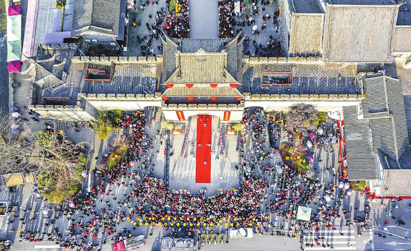 1月29日,都江堰市在灌县古城举行新年开城门仪式,以厚重的文化积淀、特有的风土人情吸引四面八方来客。 马川江 摄(C视觉)