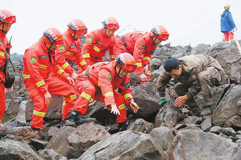 目前,仍在全力搜救失联人员。武警、消防、应急、公安、交通、医疗、通信、电力等组织救援力量949人,调集挖掘机、消防车、救护车等救援设备200余台次开展现场救援,分10个网格开展搜救排查,搜救排查正有序进行。