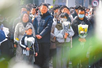2月10日,人们在武昌殡仪馆大厅外排队等待送别黄旭华院士。当日,中国工程院院士,共和国勋章、国家最高科学技术奖获得者,中国第一代核潜艇工程总设计师黄旭华同志遗体送别仪式在湖北省武汉市武昌殡仪馆举行。 新华社记者 肖艺九 摄
