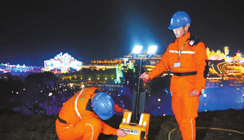 第一道电力防线,即双电源供电系统,两条10千伏电力专线如同两条“大动脉”,将电能源源不断输送到景区。“一旦专线出现故障,另外一条能在毫秒间无缝切换。”国网自贡供电公司自流井区供电中心副主任李琦解释。