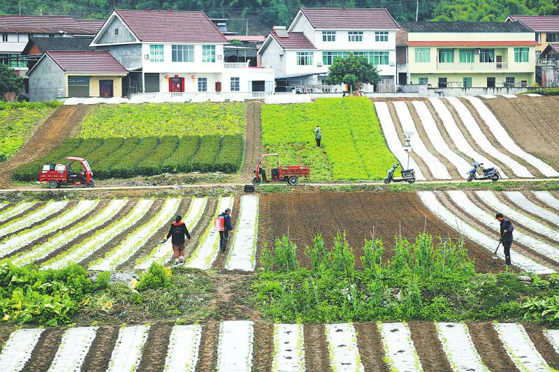 二月十三日,在位于宜宾市翠屏区思坡镇心宁村的沿江蔬菜示范基地,村民们忙着翻整土地、移栽菜苗、浇水施肥。该蔬菜基地享有宜宾“菜篮子”美誉。兰锋摄(C视觉)