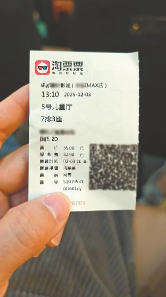 近日,伴随着春节档多部电影的持续走热,多位消费者反映在春节期间购买电影票时遭遇“高额服务费”问题。网友汪先生称,他在成都市某影城购买的电影票实付67.9元,票面显示单张票价仅35元,其余32.9元为服务费,而观影全程未感受到额外服务;另有网友发现,同一场次电影在影城小程序售价35元,第三方平台却高达70多元,差价疑似为服务费。
