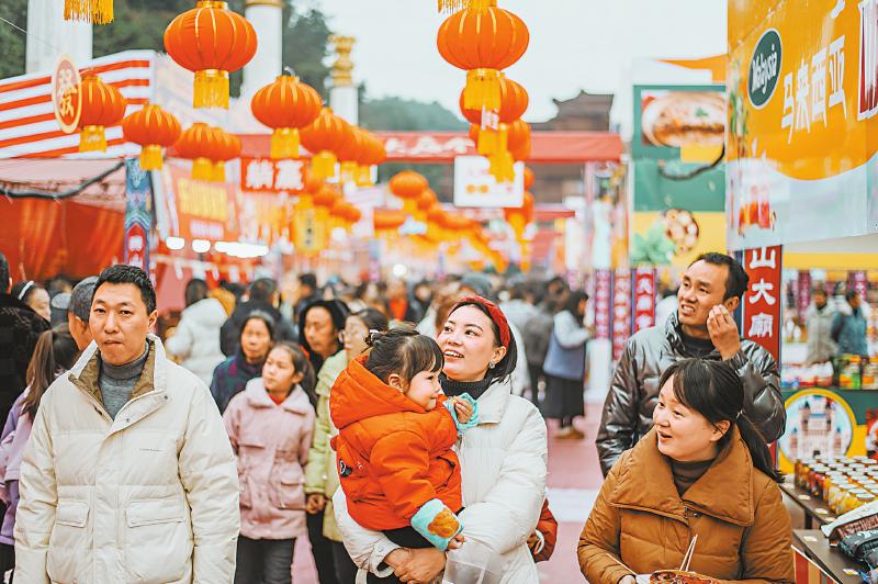 正月初一至初六,创新呈现的2025乐山大庙会成为乐山春节假期最具人气打卡地。环线4公里内打造了2广场3街区(大佛文化主题广场、草坪音乐广场和非遗展演街、美食游玩街、餐饮住宿街),布展(馆)126个,展销商品近500种,其间,11个区县地标“微景观”和特色民俗、美食、文创汇聚,让市民和游客不出乐山城就能体验到各区县民俗文化。