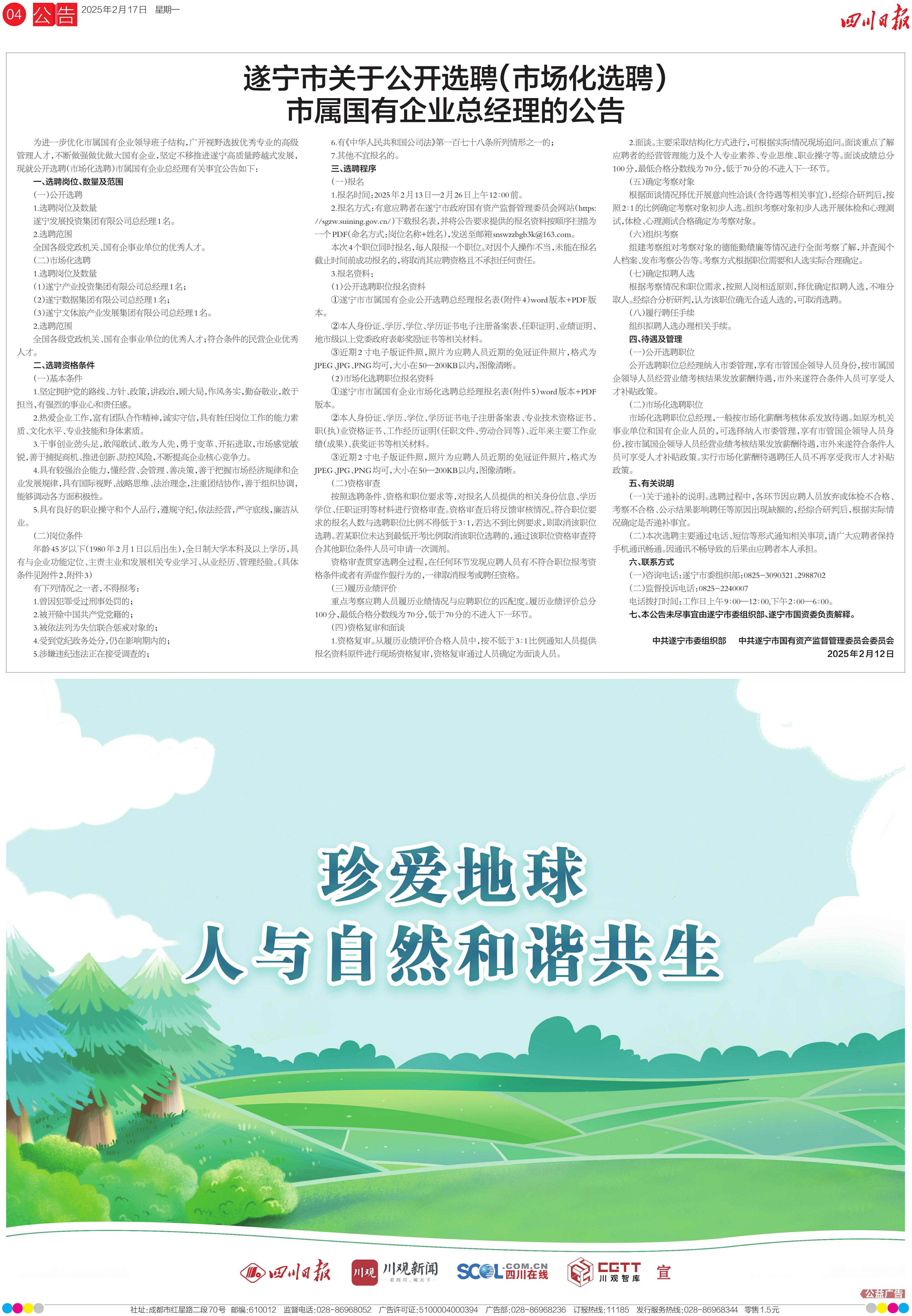 ·遂宁市关于公开选聘(市场化选聘)市属国有企业总经理的公告