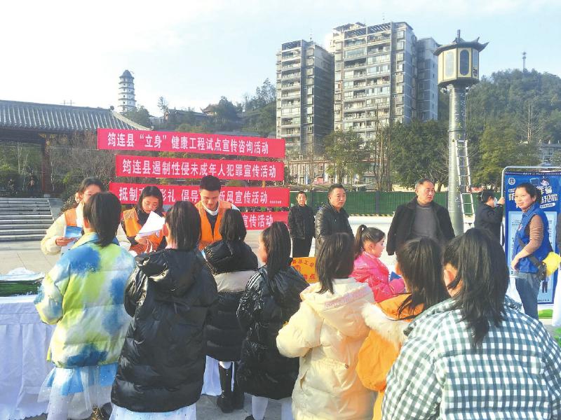 筠连县志愿者开展未成年人扁平足、脊柱弯曲预防与矫治宣传咨询活动。
