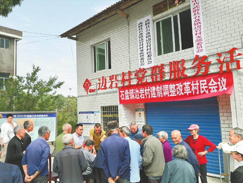 武胜县石盘镇村级建制调整改革坝坝会现场。