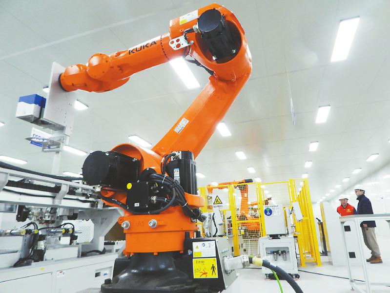 2月19日,在四川星空钠电电池有限公司,机器人在智能生产线上忙碌作业。达州市坚持服务民营经济发展,吸引和培育了一大批涉及电子信息、服装加工、纺织印染、钢铁冶炼、机械制造和战略性新兴产业、新材料研发生产等领域的民营企业。 邓良奎 摄(C视觉)