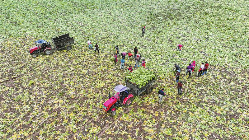 ①2月19日,工人在南充阆中市柏垭粮油现代农业园区采收芥菜。王玉贵 摄(C视觉)
