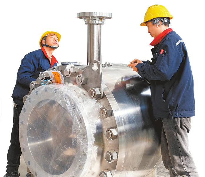 这个“大家伙”,被用于中俄东线天然气管道、西气东输三线等重大工程。许世法告诉记者,管线球阀,是天然气长输管线的关键控制部件,它被焊接在管线上,平时是常开状态,出现紧急情况时自动关闭,切断天然气输送,避免发生泄漏。在绵延数千公里的油气管线输送过程中,充当安全卫士,能承受住900磅级的压力。