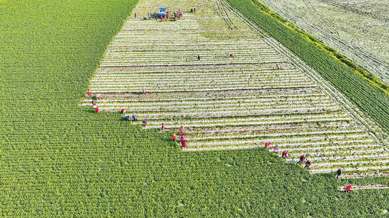 2月25日,遂宁市船山区老池镇渝遂绵优质蔬菜生产带核心区,村民们正在地里收萝卜。遂宁市船山区高质量打造川渝“菜篮子”,目前,已建成5500亩核心区,种植白菜、花菜、萝卜等精品蔬菜,年产量超10万吨,带动1万余户农户户均年增收1200元。 刘昌松 摄(C视觉)